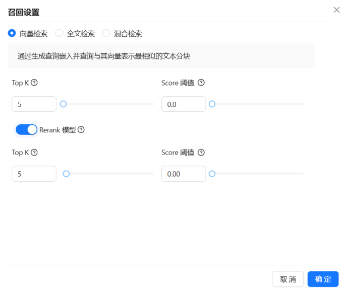 注意:召回设置仅用于召回测试使用,不会变更检索设置。