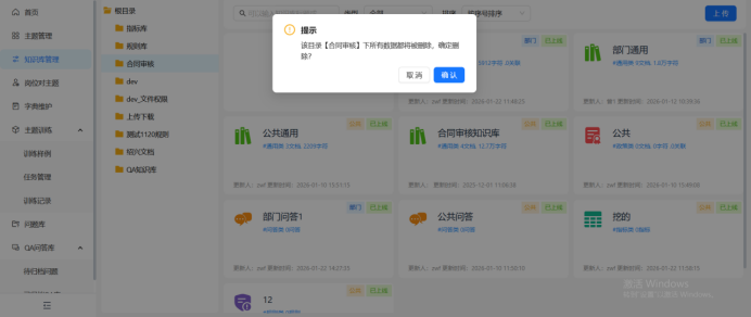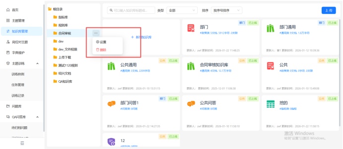 创建完成的目录支持编辑和删除,删除下面的知识库将一起删除。