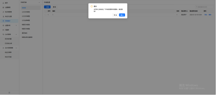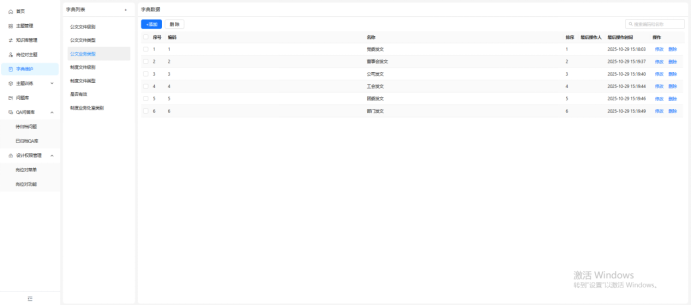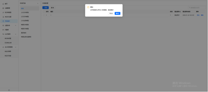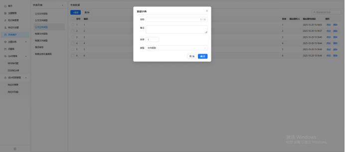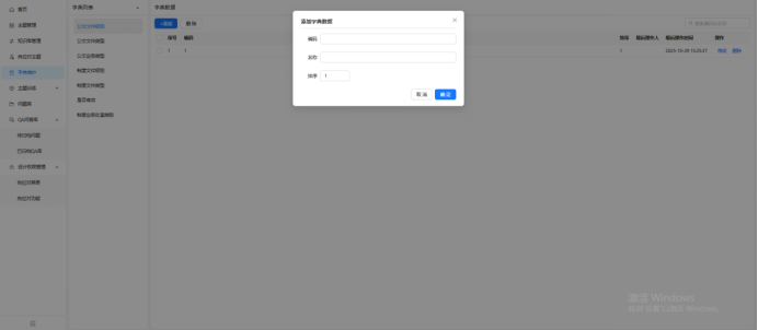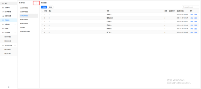 创建的字典数据点击删除可删除,点击修改可二次编辑。