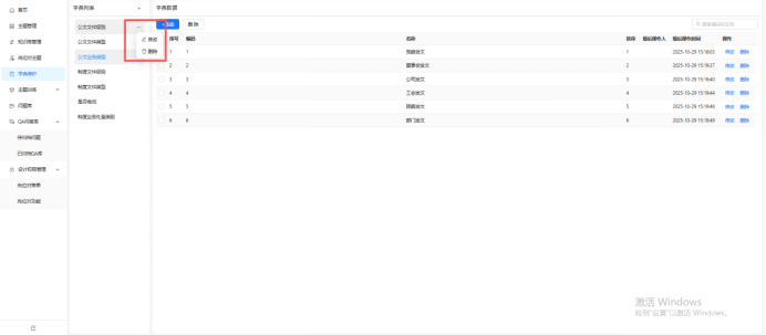 完成创建之后,点击此字典右侧的…可对字典进行二次编辑。