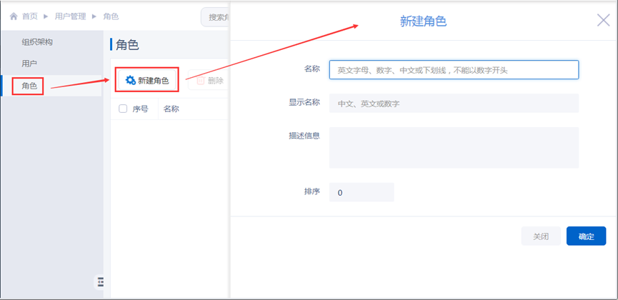 进入“用户管理>角色”界面,通过【新建角色】创建1个或多个角色,如下图: