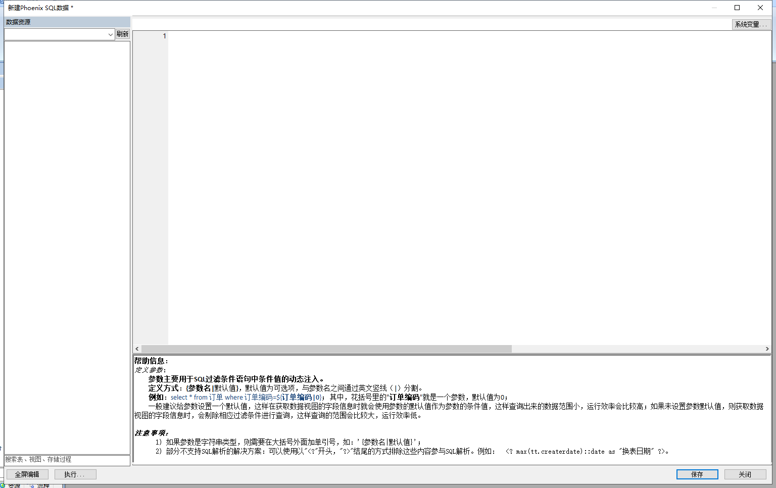 “数据”根目录或子目录右键执行“新建数据视图>HBase数据>Phoenix SQL”菜单,创建一个Phoenix SQL数据。