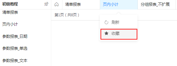这样,普通用户登录系统,访问菜单功能展示方式为“tab页方式”的应用时,打开某菜单,移入该菜单tab点击“收藏”即可收藏该菜单,如下图: