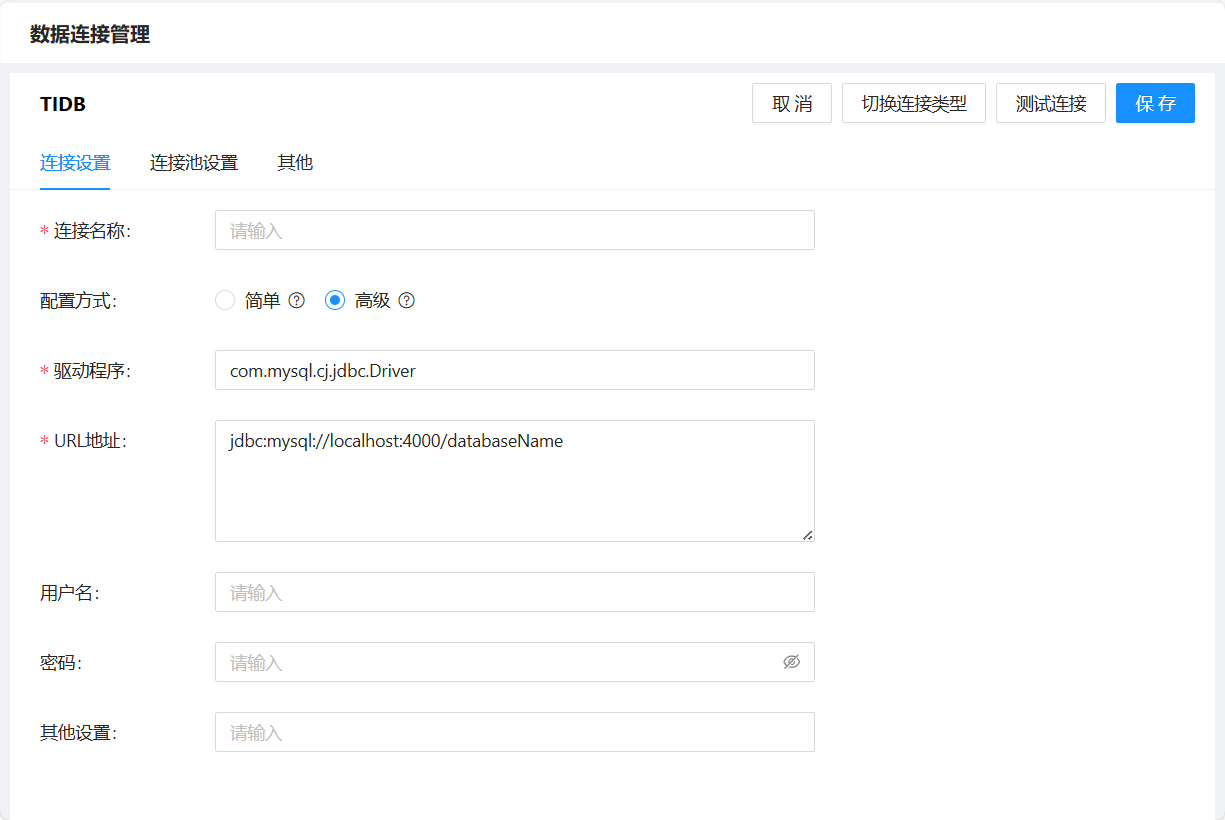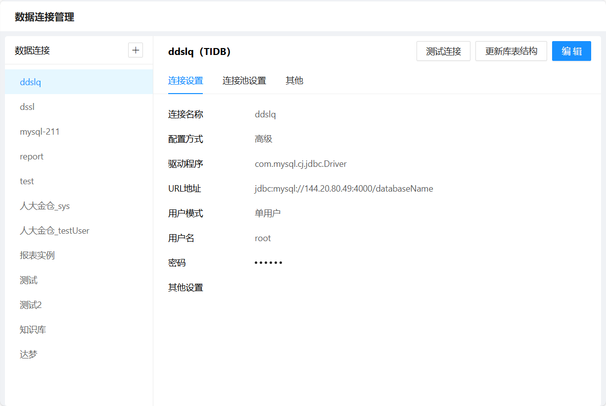 “连接池设置”和“其它”的配置,请参考:数据连接管理