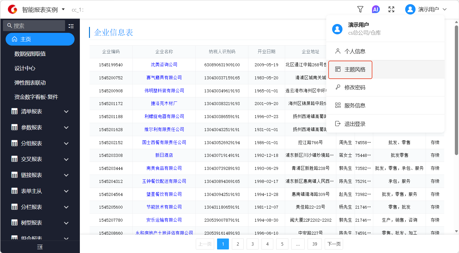 通过“主题风格”功能,您可以根据系统管理员开放的自定义权限,灵活设置您的界面布局、菜单展示方式和主题色彩。