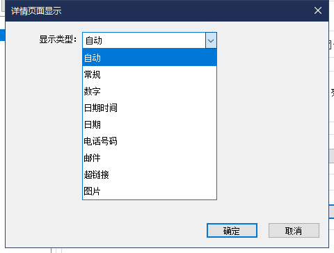 可以对字段数据的显示样式进行设置,默认选中“自动”,系统默认根据字段控件类型选择了合理的显示样式进行展示。
