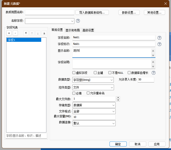 - 其他配置说明请查阅章节 元数据>字段显示与布局