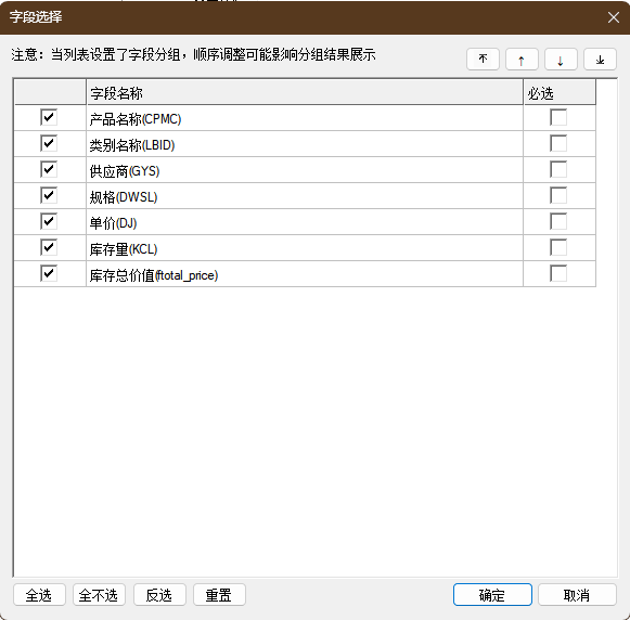 开启后可以设置默认显示字段、字段是否强制显示、列表字段默认顺序(优先级高于字段重载,调整后可能影响原分组展示)。