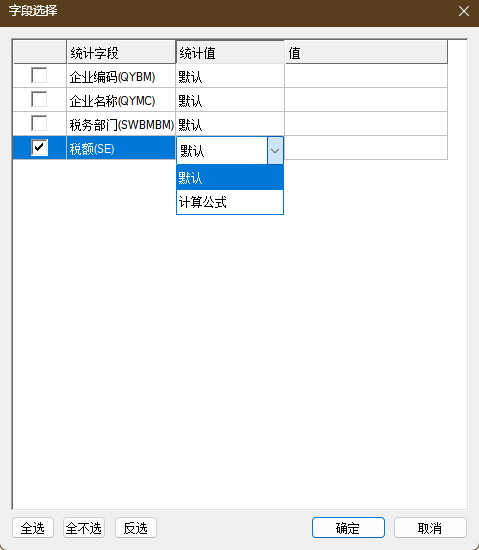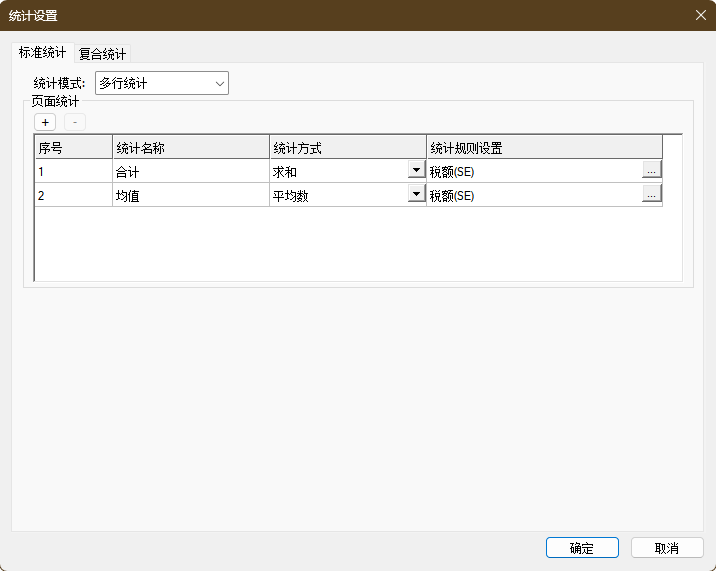 - 【统计规则设置】用于设置需要统计的字段列以及每列的【统计取值】。
