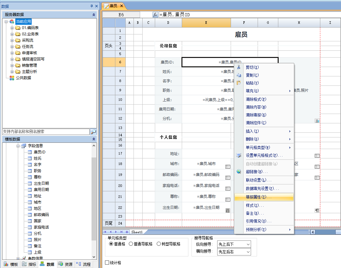 模板地址:订单实例\02.填报\003.雇员\雇员