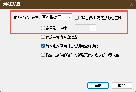 - 支持配置表单初次加载时是否默认收起参数栏区域;