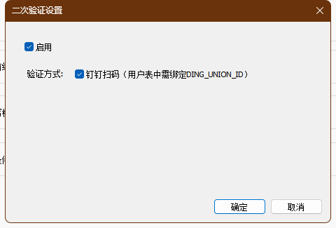 启用二次验证,选择二次验证方式(目前版本V8.0.0仅支持“钉钉扫码验证”),如下图所示。