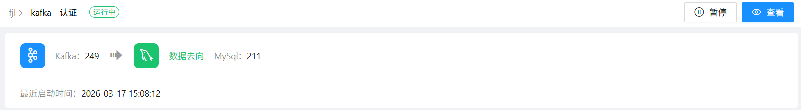 若类型为“Kafka”,则可查看该任务的数据来源、数据去向、最近启动时间,如下图: