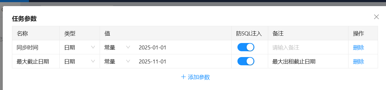 选择当前任务的任务参数,选择的参数逐行获取值,未选择的参数直接获取值。