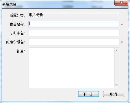 输入对应内容后,点击[下一步]即可进入集合定义界面,具体参考”集合定义”章节说明。