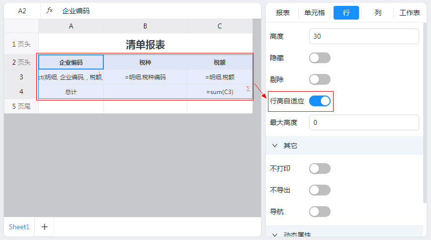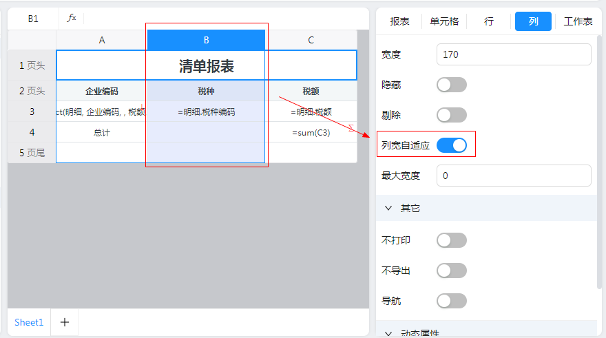 4)工作表的列宽自适应模式设置为“按容器”,如下图: