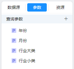 定义年份、月份、行业大类和行业小类参数均为下拉框,并选择对应的数据源。