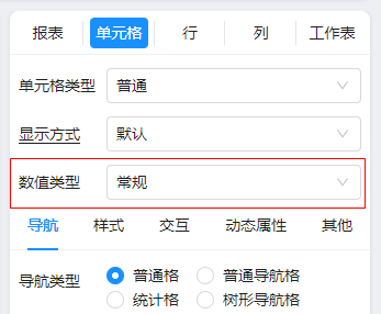选中某单元格,通过[单元格属性>数值类型]可以进行单元格的格式设置,如下图所示: