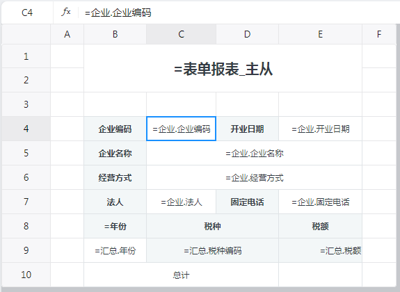 以企业税额为例,主表显示企业的基本信息,子表显示企业的税额明细,如下图:
