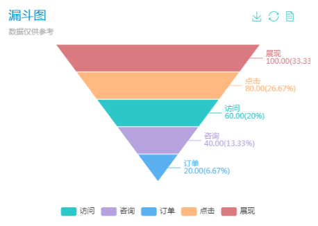 以漏斗图的方式展示订单转换率分析,效果如下: