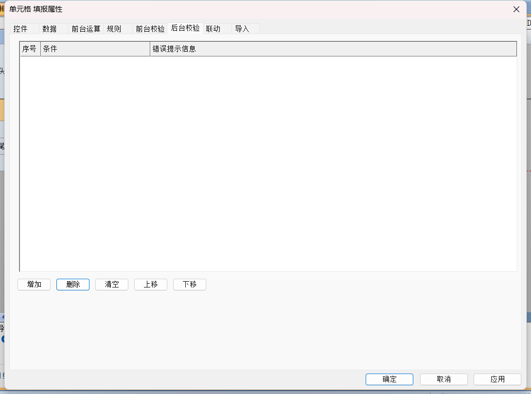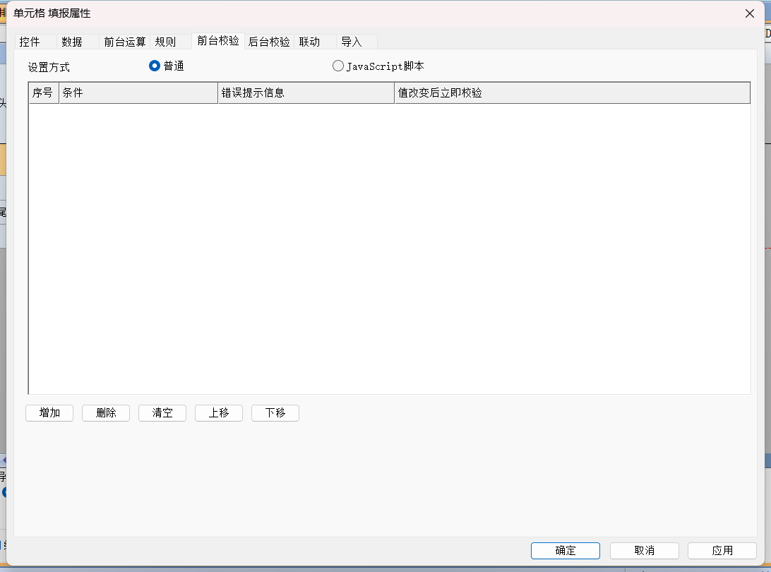 2、在「条件」列输入校验表达式: