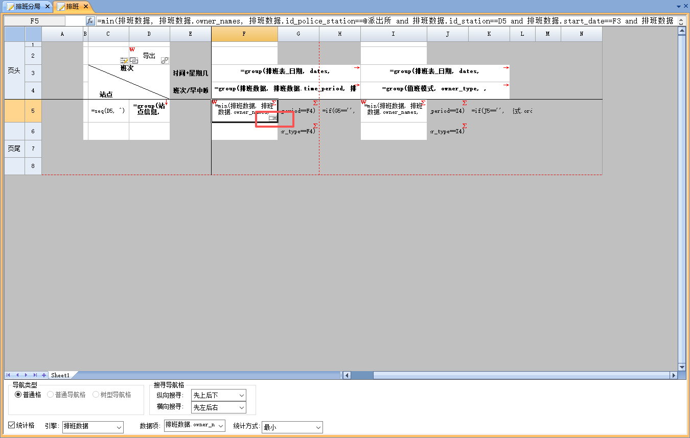 | datas | 公式 | dataset(‘排班数据’,’id,owner_names,start_date,id_station’) | 获取排班数据集 |