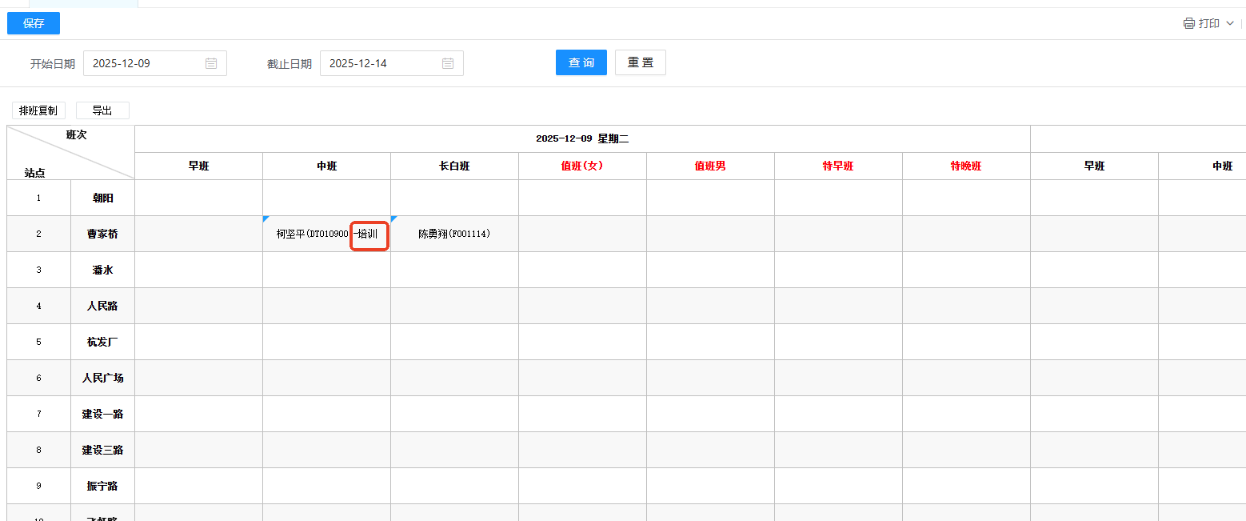// 筛选条件:同一站点、同一日期、且人员已排班