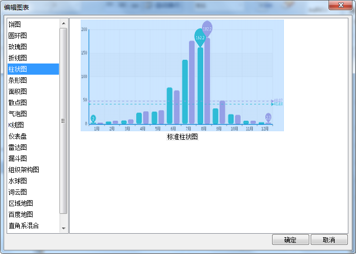 工具栏选择[插入>图表],选择”柱状图”类型,如下图: